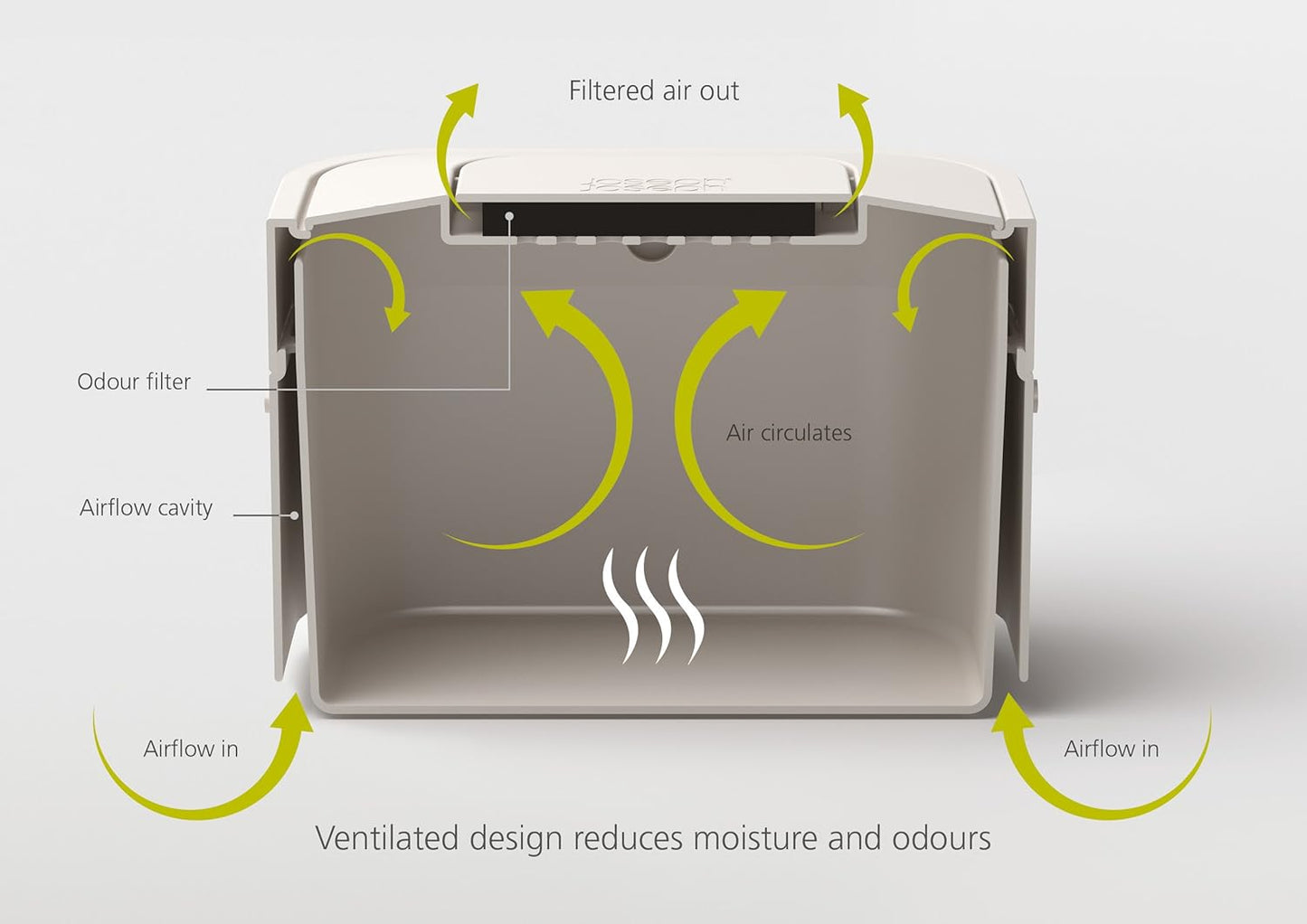 • Replaceable odour filter in lid