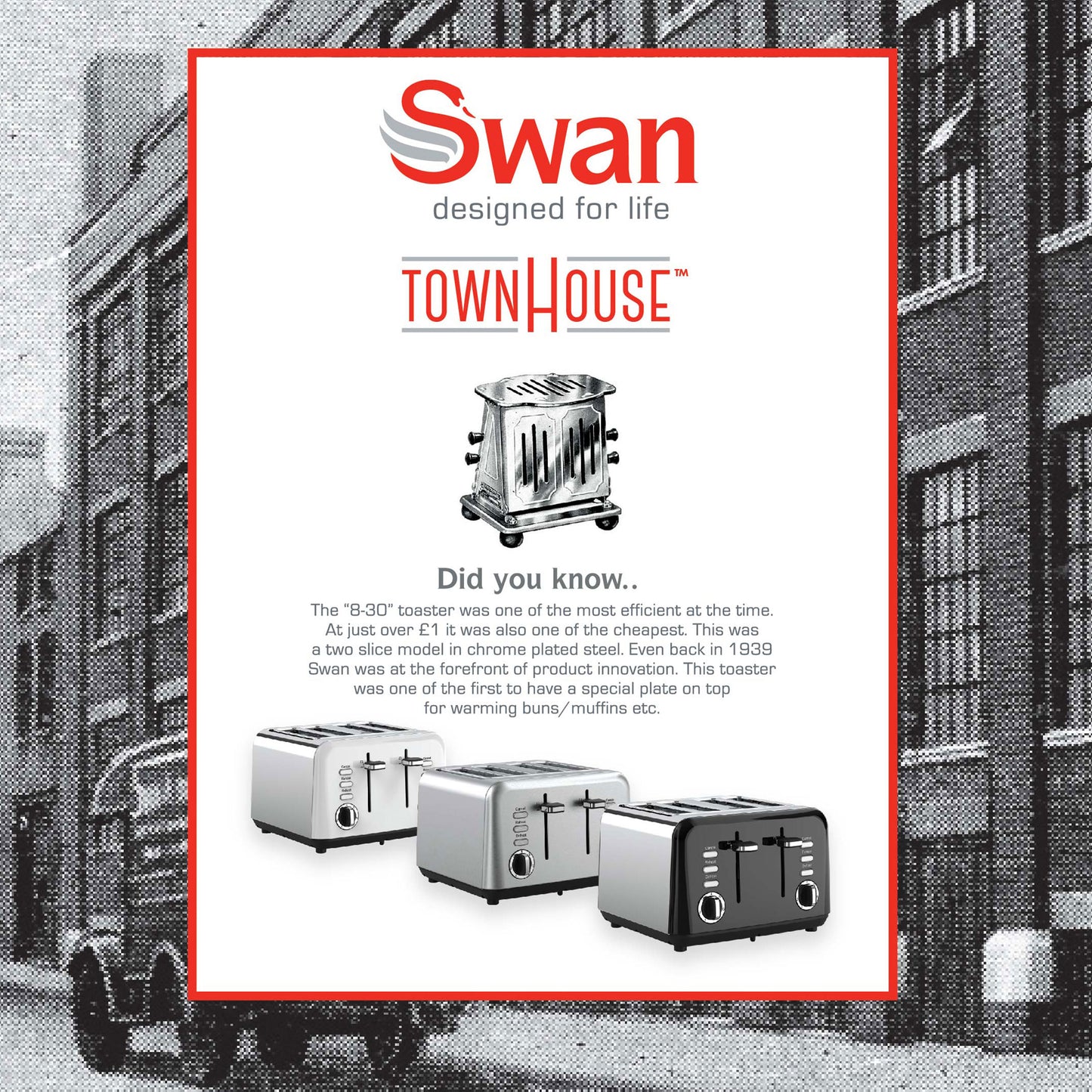 The Swan Townhouse 2-Slice Metal Toaster is a sleek and efficient kitchen appliance designed to elevate your toasting experience.