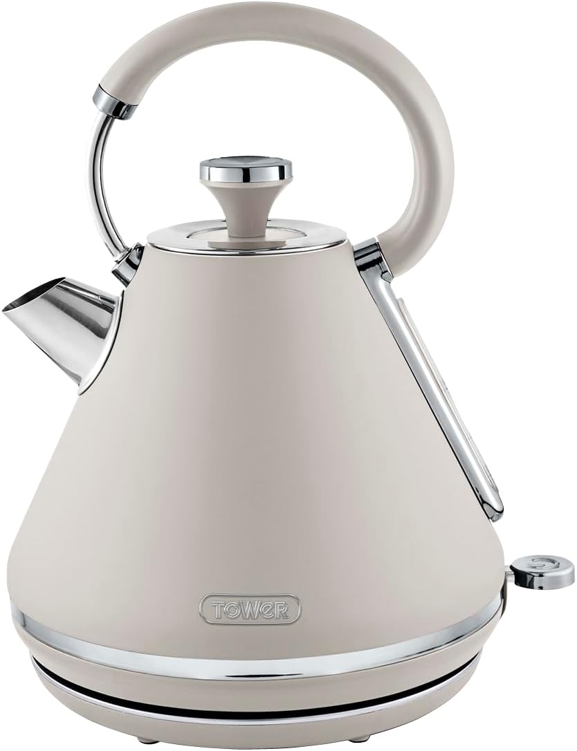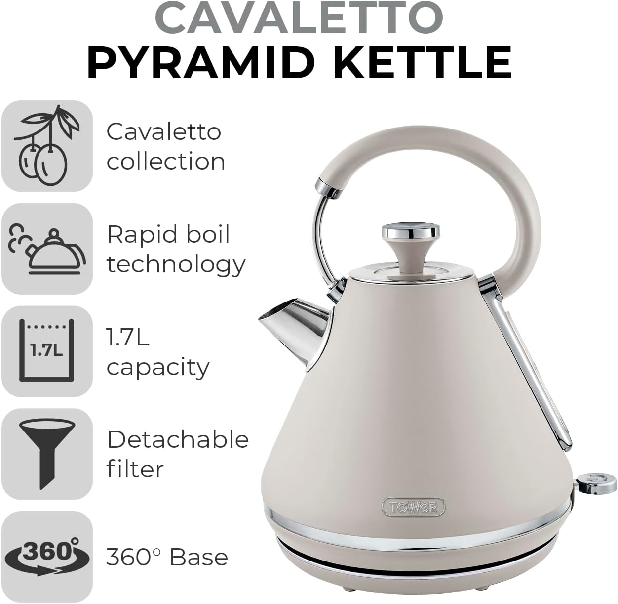 Tower T10044MSH Cavaletto Pyramid Kettle with Fast Boil, Detachable Filter, 1.7L, 3000 W, Latte and Chrome Accents