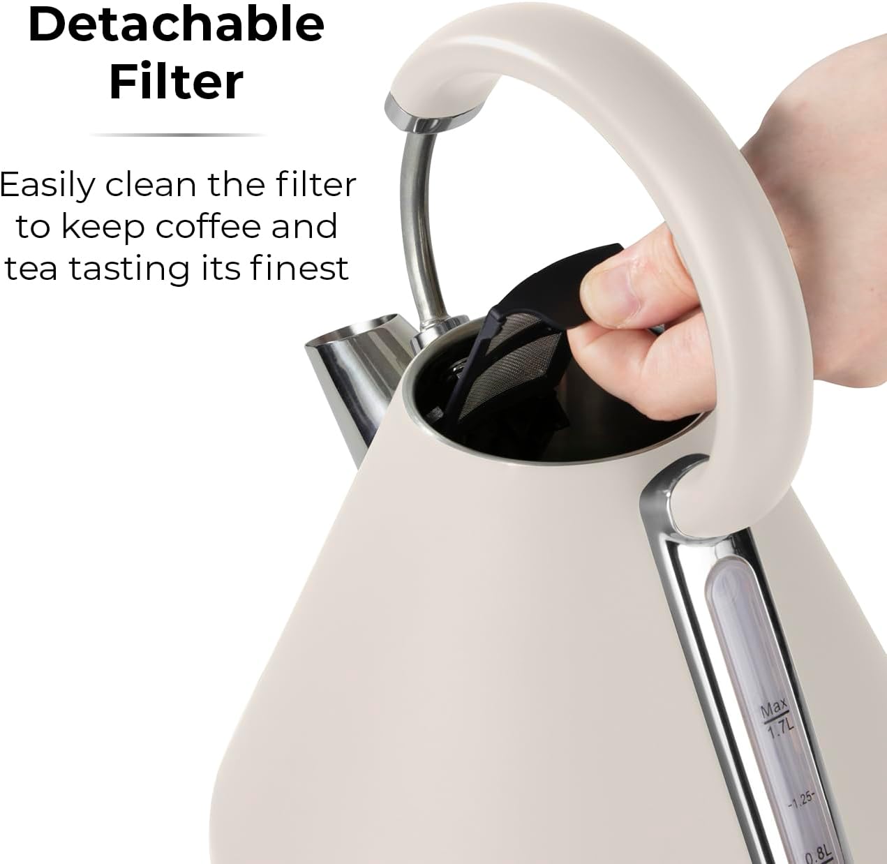 The Tower Cavaletto Pyramid Kettle with Fast Boil and Detachable Filter in Latte and Chrome Accents