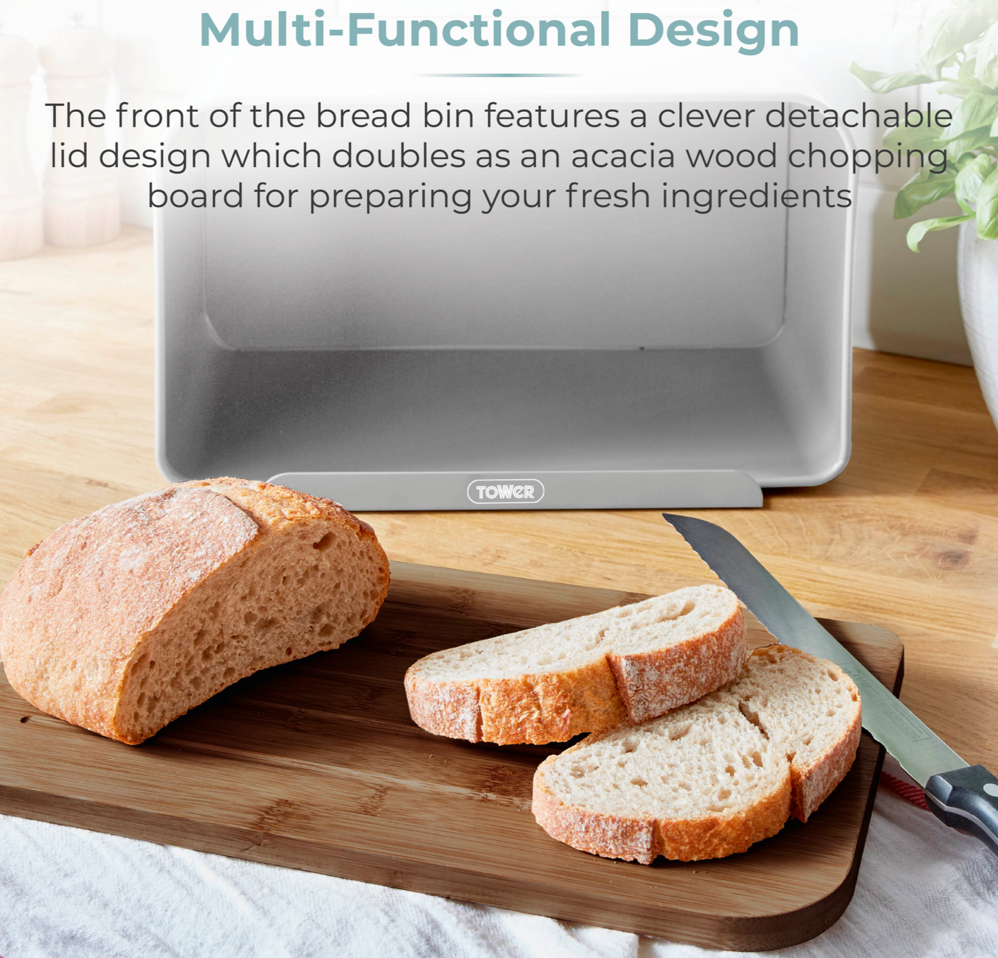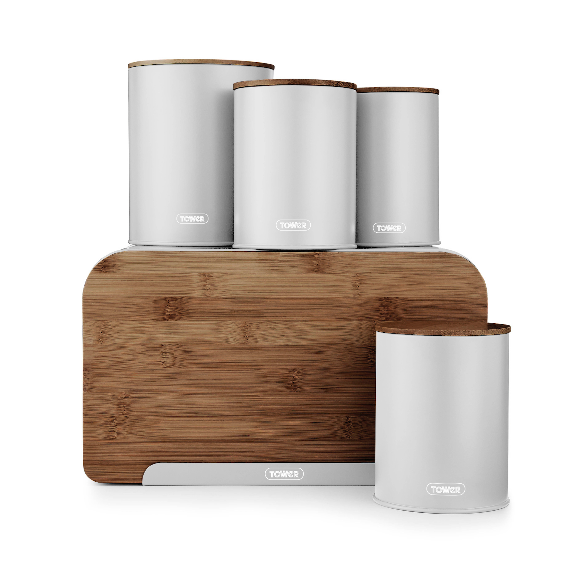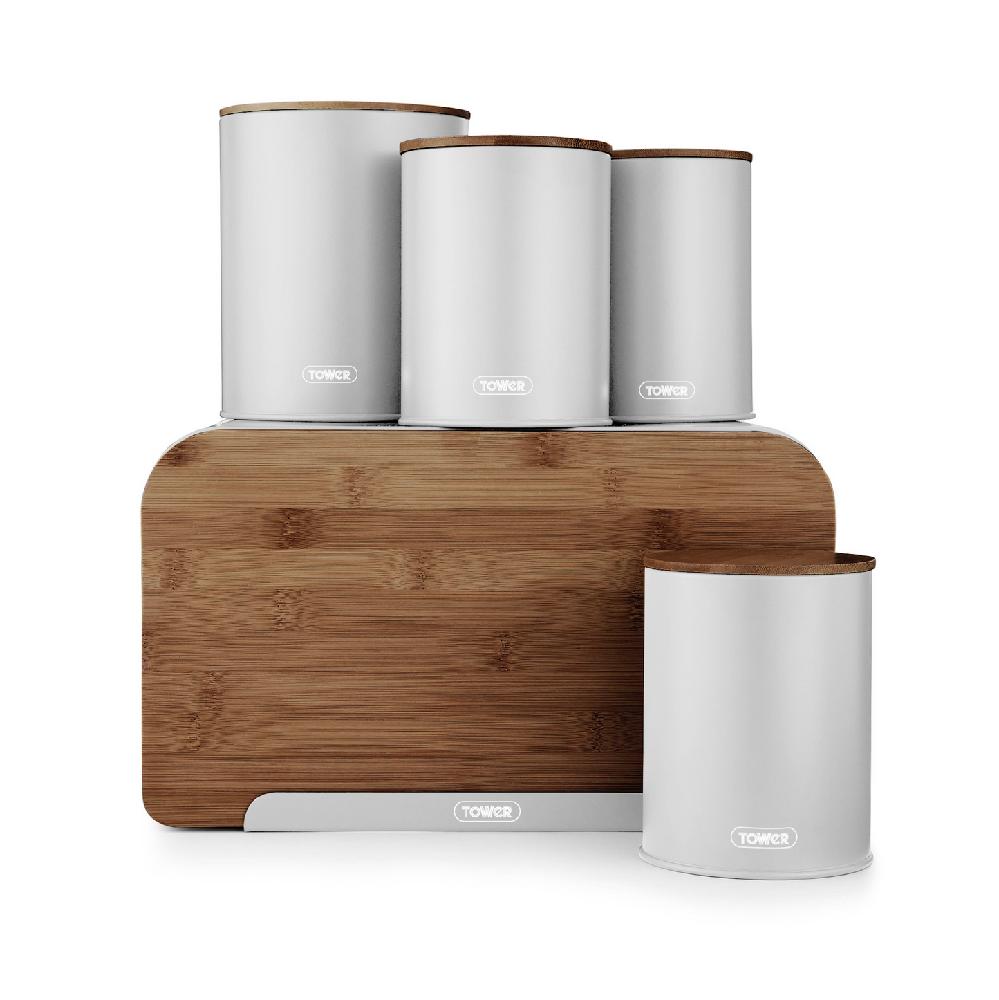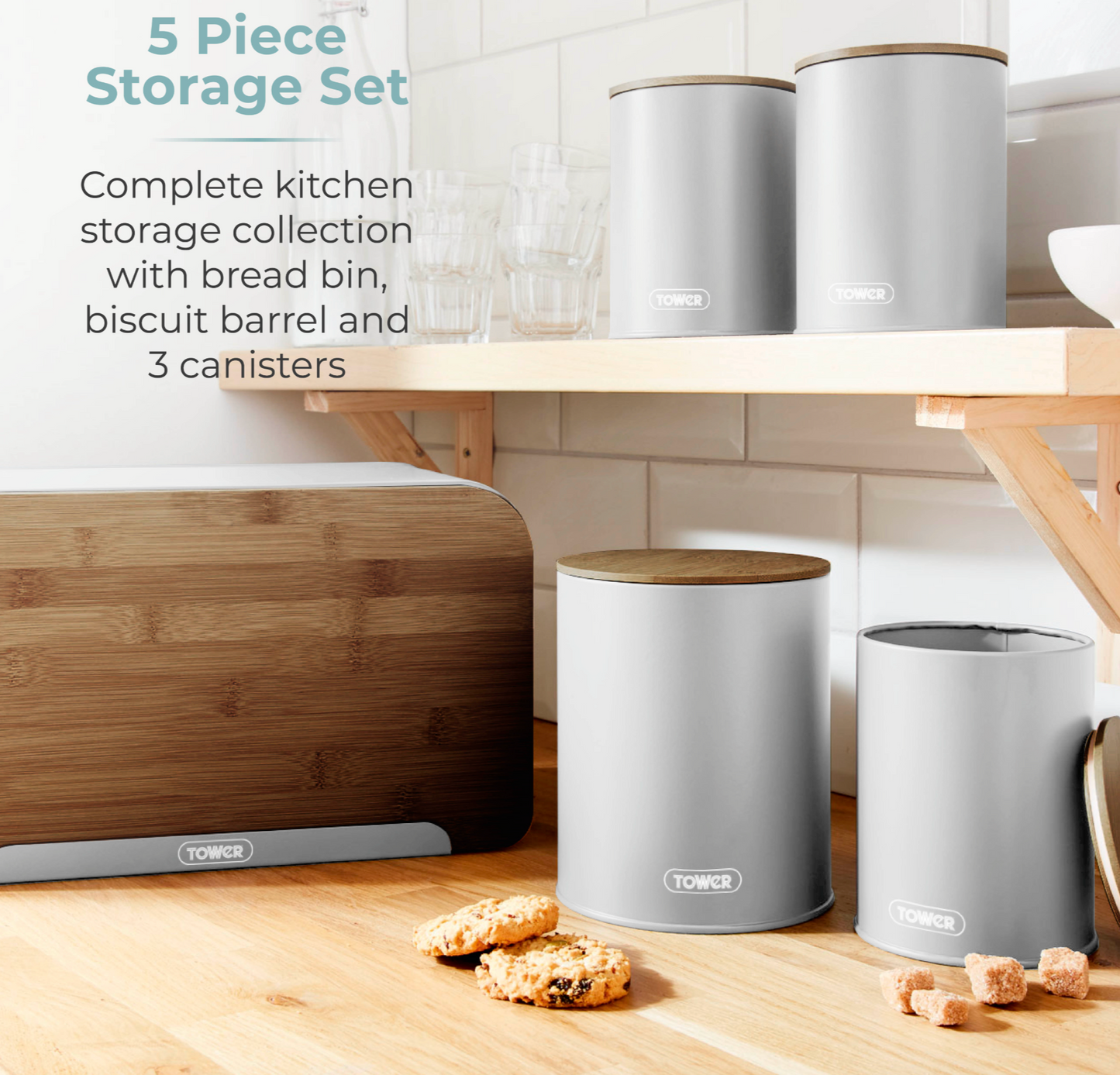 The Tower Scandi Grey Bread Bin, Canisters and Biscuit Tin Storage Kitchen Set