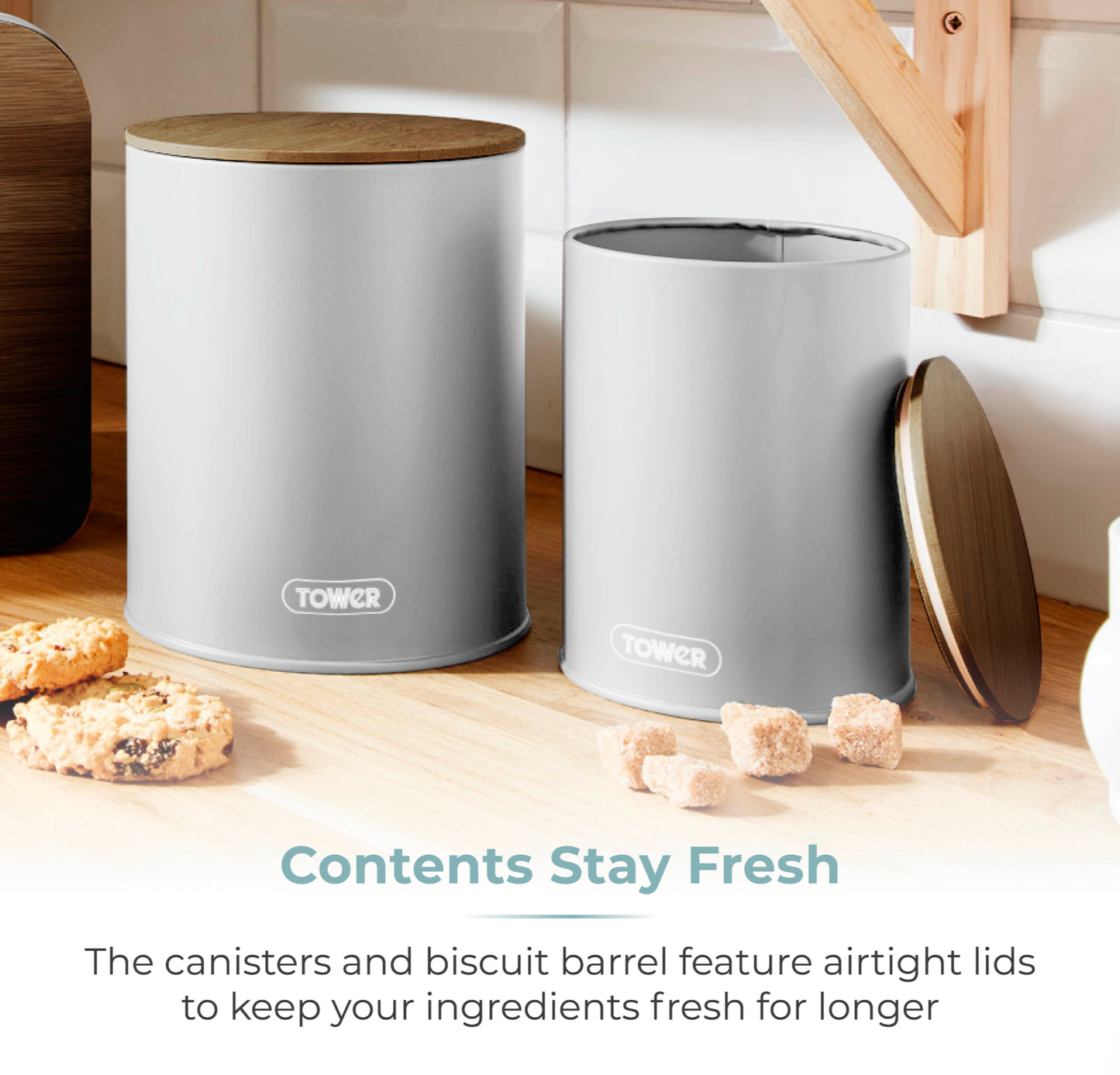Tower Scandi Bread Bin, Canisters & Biscuit Tin Storage Kitchen Set T826141DGRY (Grey)