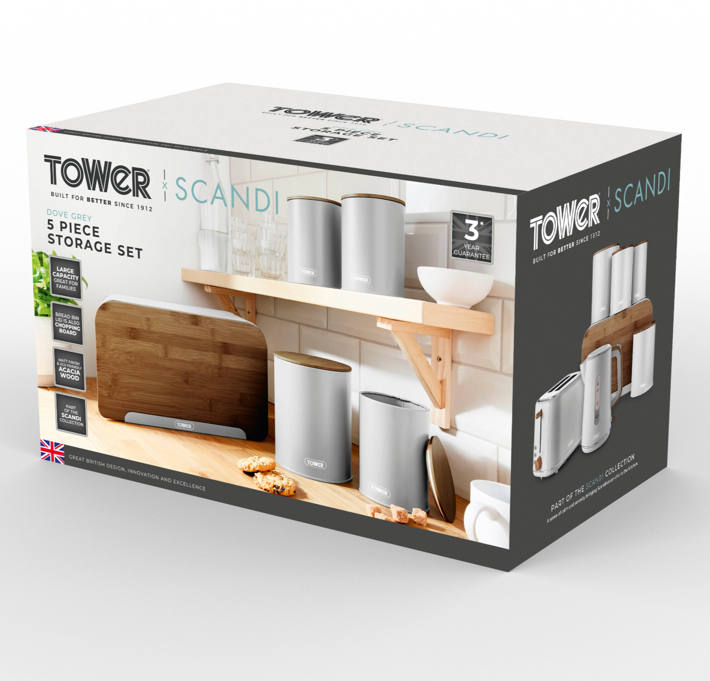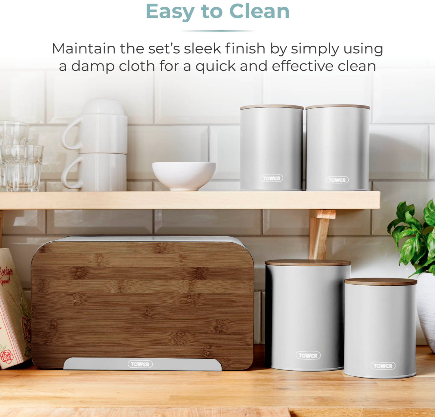 Tower Scandi Grey Bread Bin, Canisters & Biscuit Tin Storage Set T826141DGRY